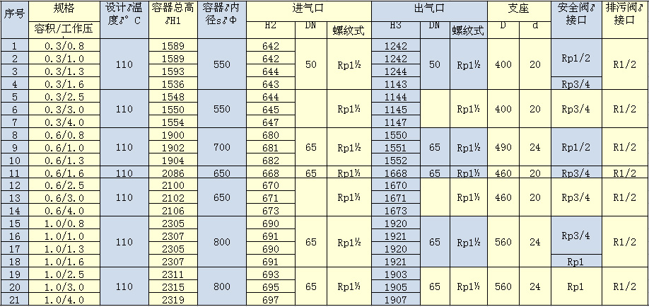 是專門用于儲存壓縮空氣的壓力容器,主要用于存氣緩沖,同時起穩(wěn)定系統(tǒng)壓力的作用,避免空壓機(jī)頻繁加卸載和除掉大部分的液態(tài)水,主要與壓縮機(jī)、冷凍式干燥機(jī)、過濾器等設(shè)備配套使用,組成工業(yè)生產(chǎn)上的動力源壓縮空氣站。